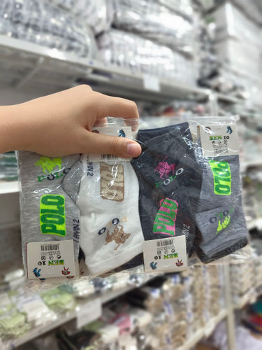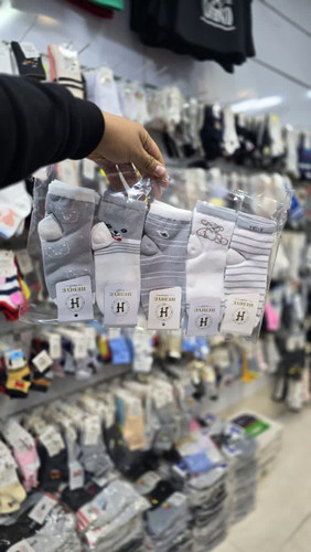 جوراب نیم ساق بچه گانه اعلا پاشنه وپنجه دوبل طرح نوشته دار دو خط کد 2970