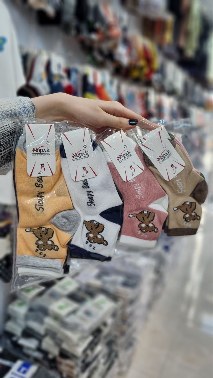 جوراب نیم ساق بچه گانه اعلا پاشنه وپنجه دوبل طرح سر تدی کد 2975