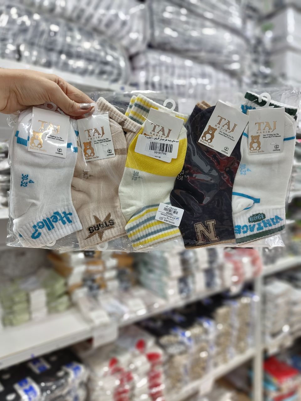 جوراب نیم ساق بچه گانه اعلا پاشنه وپنجه دوبل طرح نوشته دار دو خط کد 2970