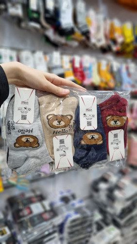 جوراب مچی بچه گانه نخی طرح تدی متنوع برند هلن کد 2824 (12 جفتی)