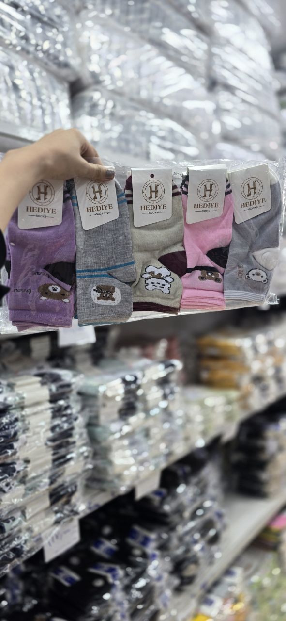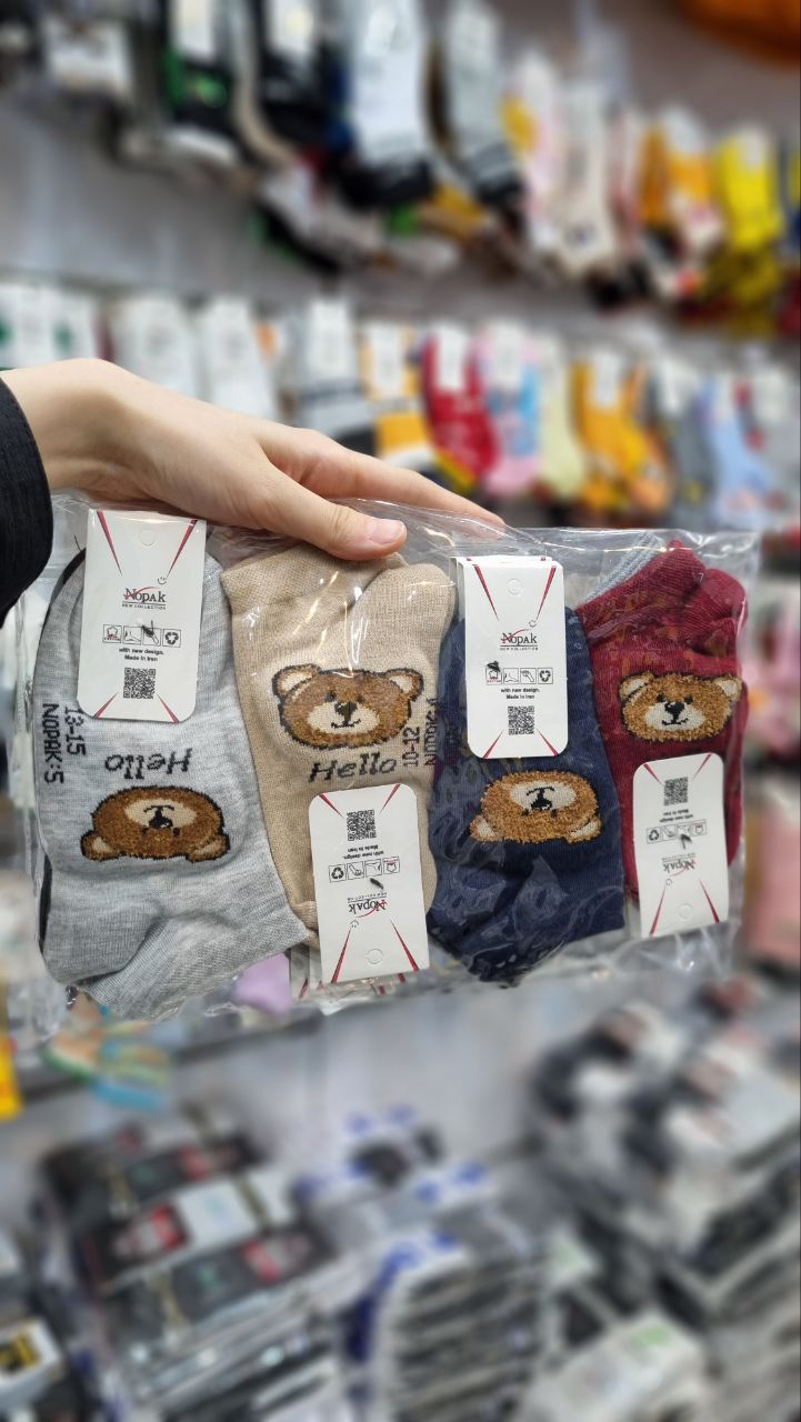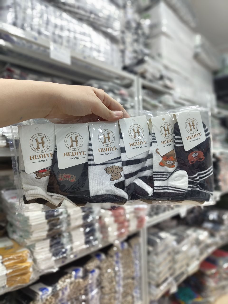 جوراب مچی بچه گانه نخی طرح تدی متنوع برند هلن کد 2824 (12 جفتی)