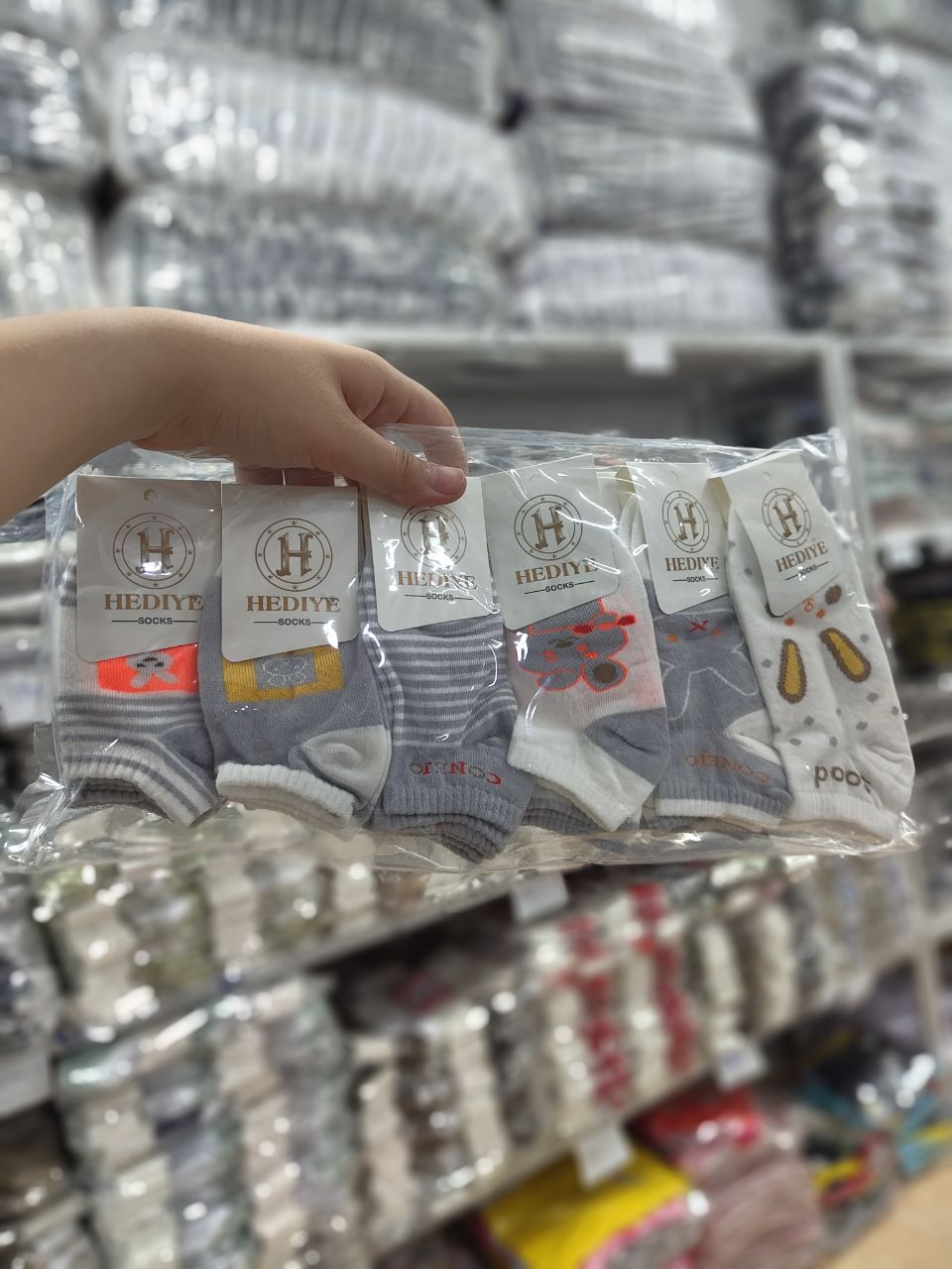 جوراب مچی بچه گانه نخی در طرح های مختلف برند هلن کد 2823 (12 جفتی)