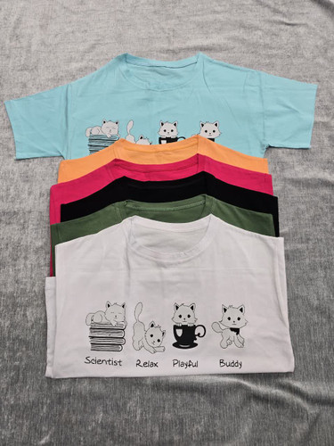 تیشرت نخ پنبه طرح گربه کارتونی کد 3564ناموجود