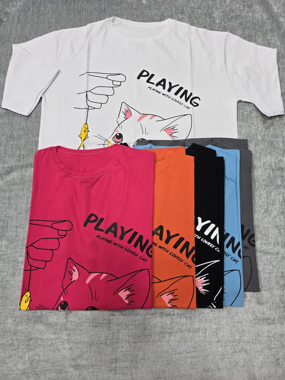 تیشرت نخ پنبه طرح چاپ گربه کد 3563