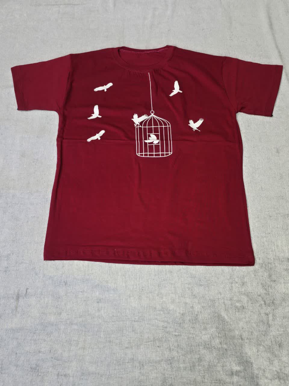 تیشرت نخ پنبه طرح قفس و پرنده کد 3503