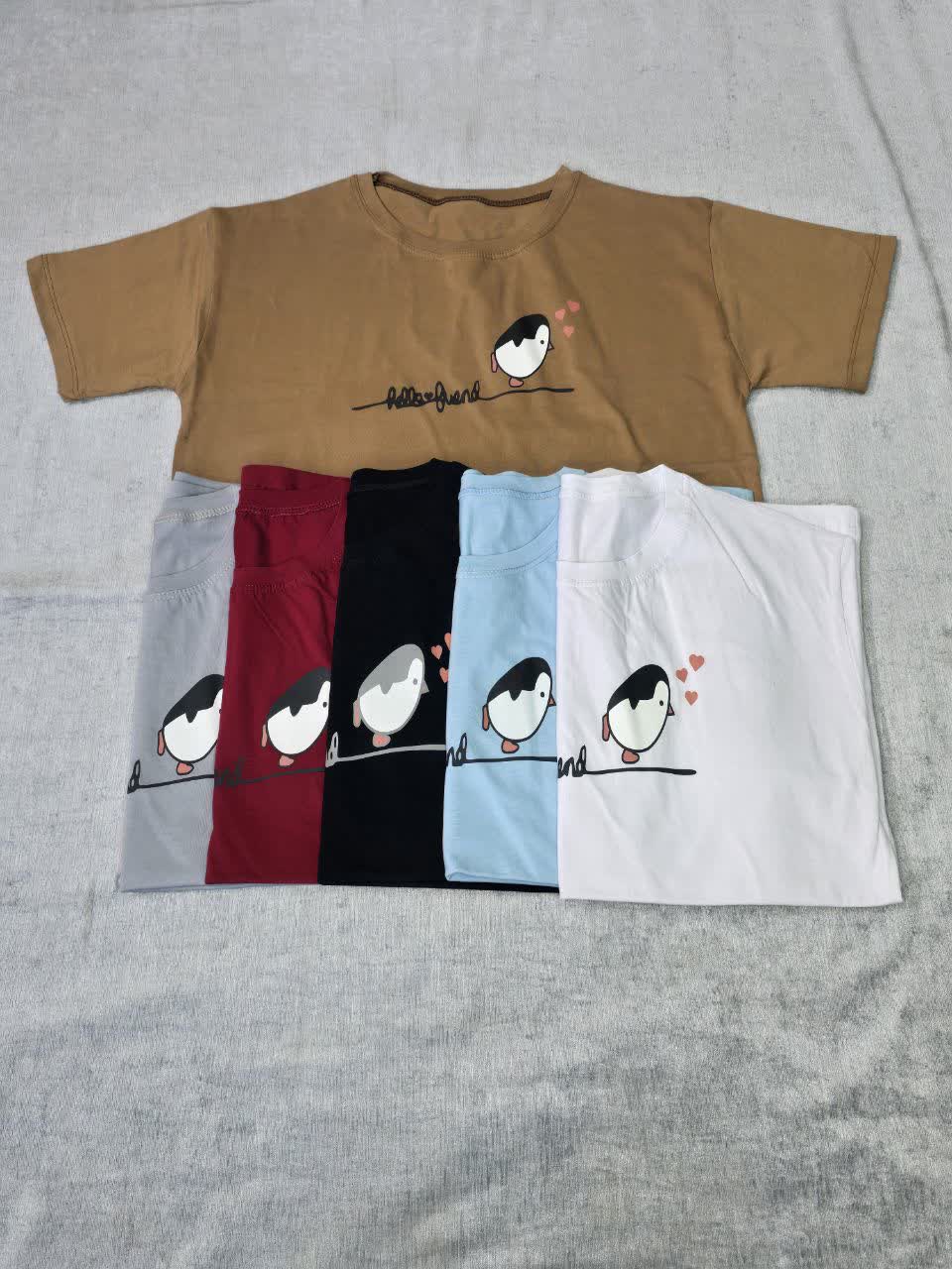 تیشرت زنونه پنبه طرح پنگوئن کد 3551