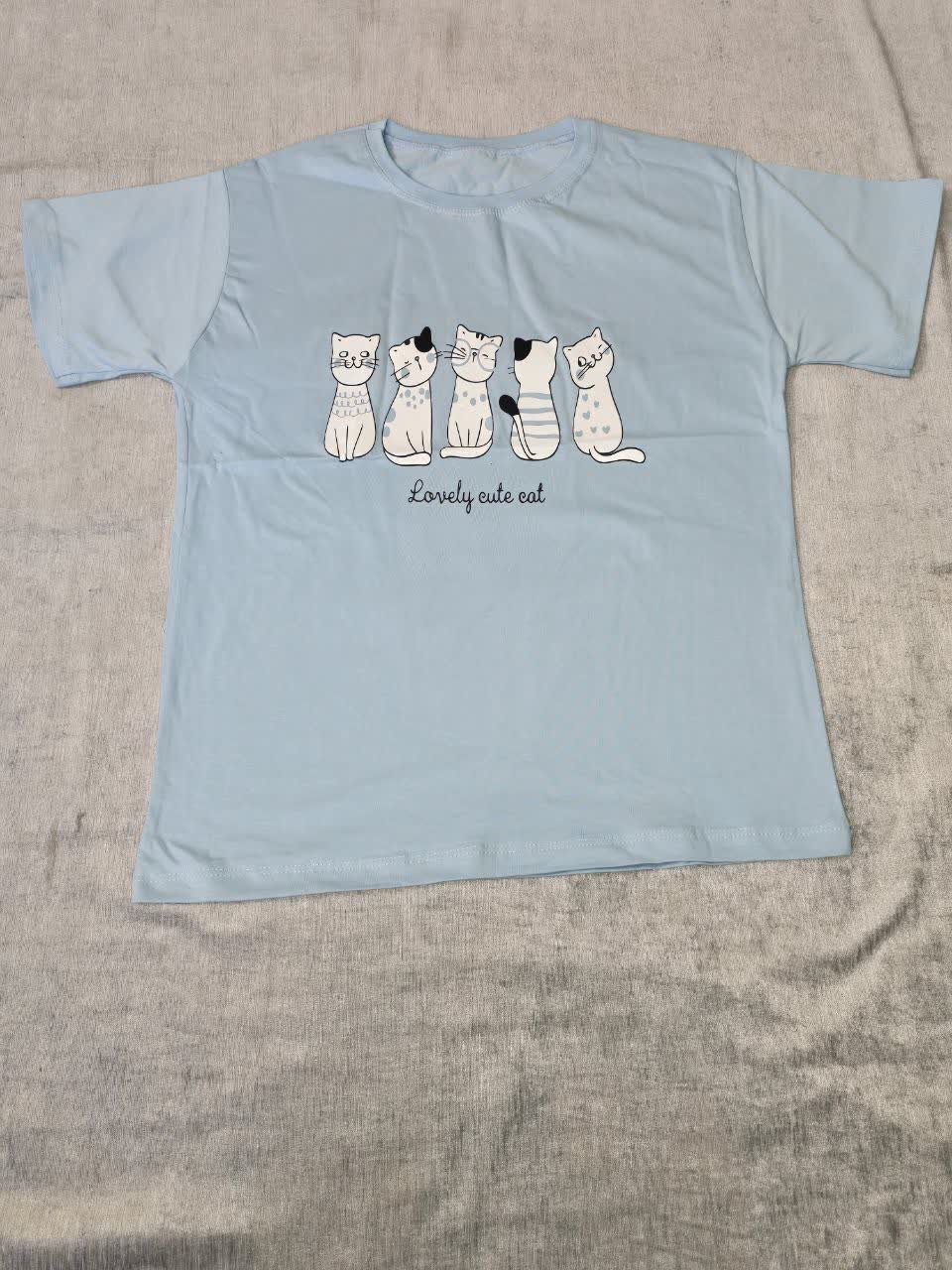 تیشرت نخ پنبه طرح گربه کد۳۵۱۹