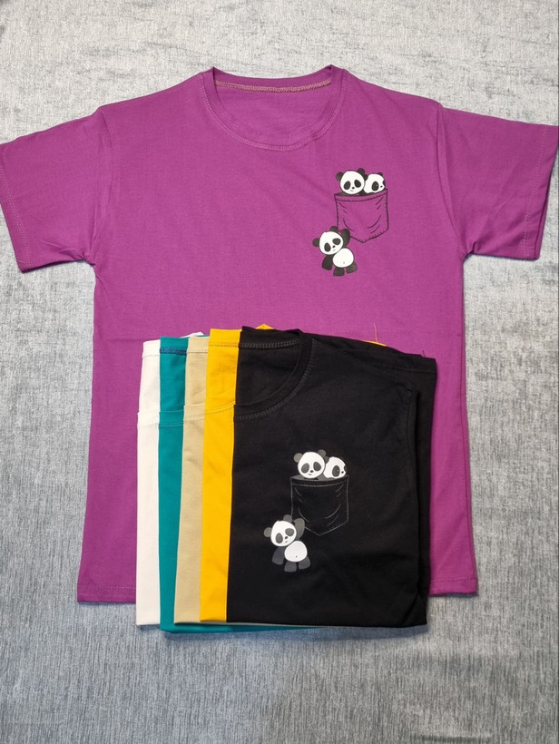 تیشرت نخ پنبه طرح پاندا جیبی کد 3503