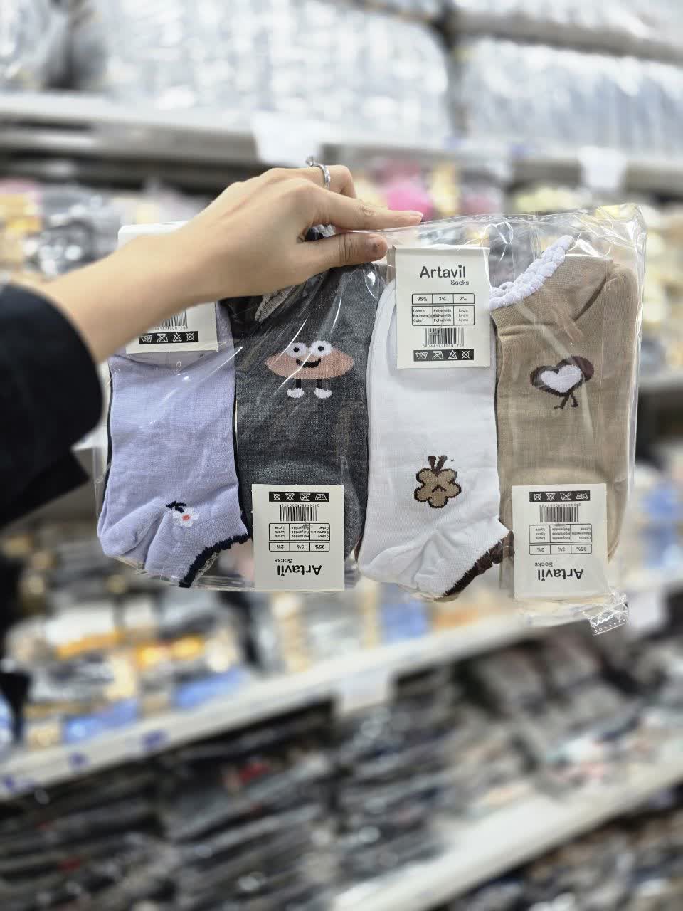 جوراب مچی زنانه نخی با کیفیت بالا طرح گل و قلب کد ۱440( 12 جفتی )