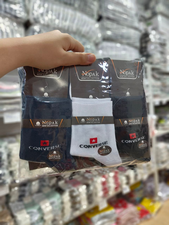 جوراب نیم ساق مردانه نخ پنبه طرح کانورس کد 2227 ( 12 جفتی )