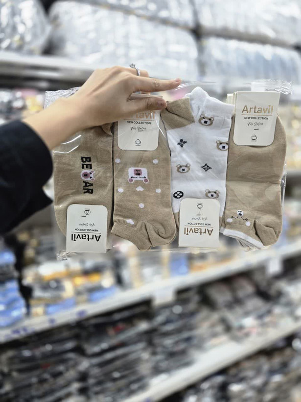 جوراب مچی زنانه نخی با کیفیت بالا طرح تدی کرم و سفید کد 1475 ( 12 جفتی )