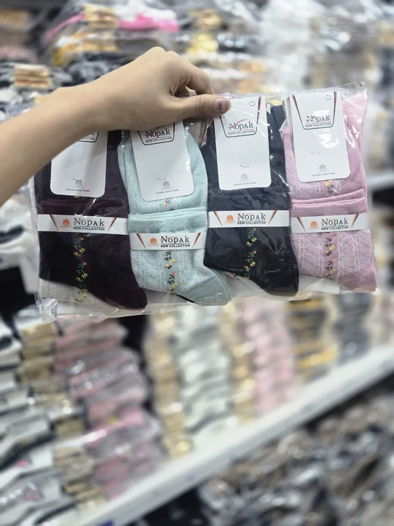 جوراب نیم ساق زنانه نخ پنبه هندی طرح شکوفه ریز نوپاک کد1564( 12 جفتی )