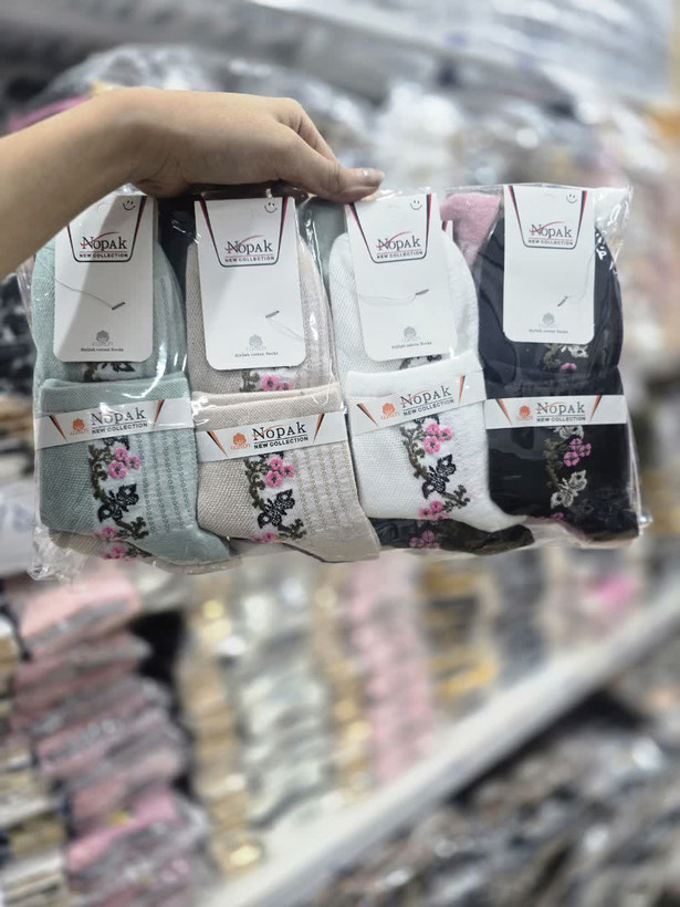 جوراب نیم ساق زنانه نخ پنبه هندی طرح گل شاخه ای نوپاک کد1565( 12 جفتی )
