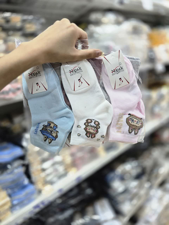 جوراب نیم ساق بچه گانه اعلا پاشنه وپنجه دوبل طرح لبوبو کد2964(تک سایز داخل جین)