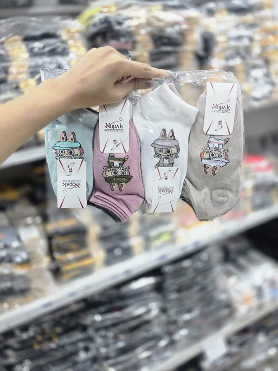 جوراب مچی بچگانه اعلا پاشنه پنجه دوبل طرح لبوبو کلاه دار کد 2815