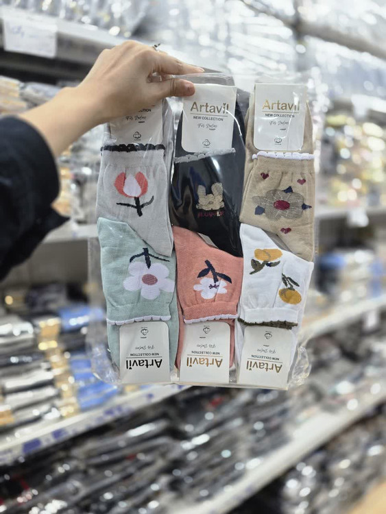 جوراب نیم ساق زنانه نخ پنبه هندی در طرح و رنگبندی متنوع گل کد 1568 ( 12جفتی )