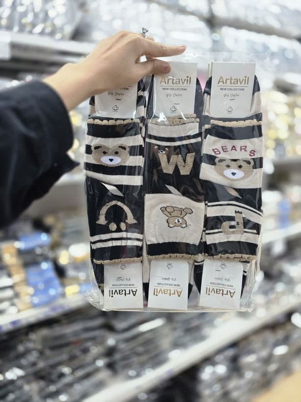 جوراب نیم ساق زنانه نخ پنبه هندی در طرح مشکی کرم تدی کد 1570 ( 12جفتی )