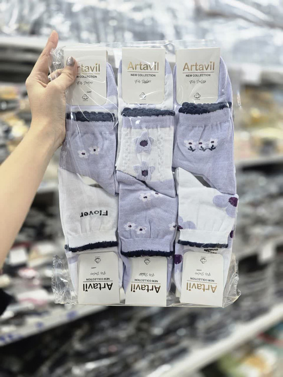 جوراب نیم ساق زنانه نخ پنبه هندی طرح گل یاسی بنفش کد 1574 ( 12جفتی )