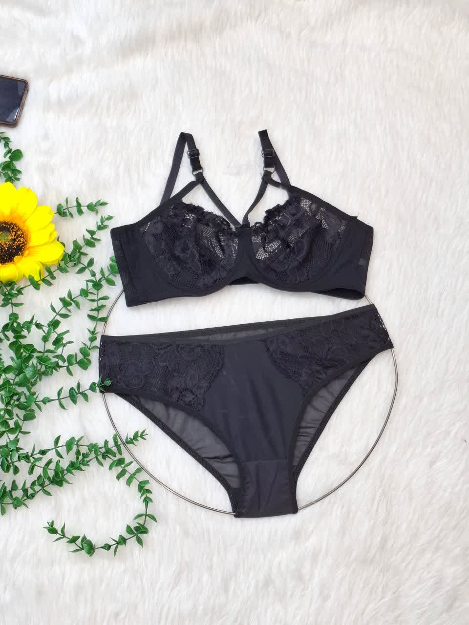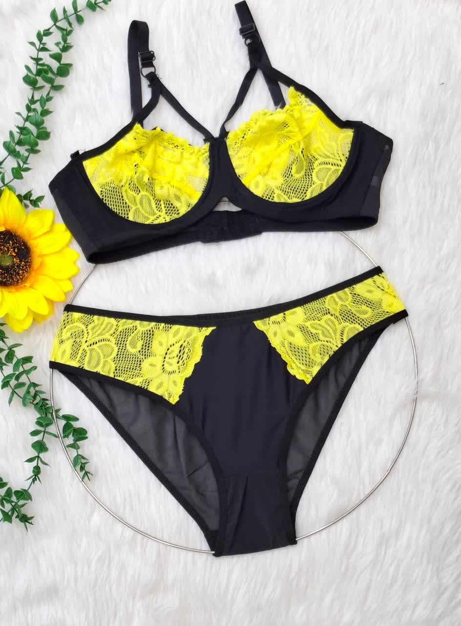 ست شورت سوتین تمام تور مشکی تور رنگی اعلا زنانه کد 3157