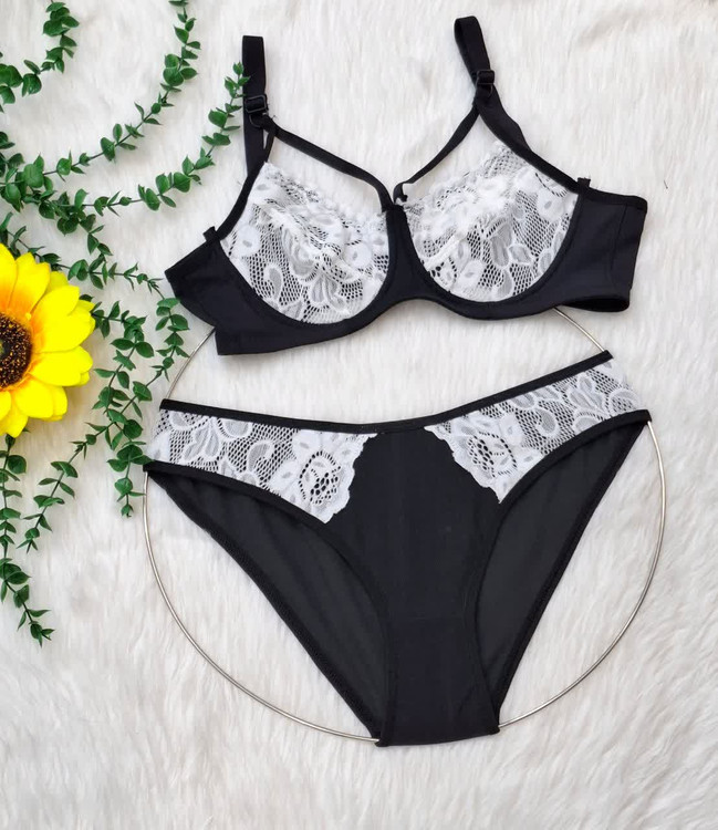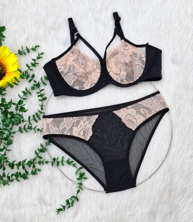 ست شورت سوتین تمام تور مشکی تور رنگی اعلا زنانه کد 3157