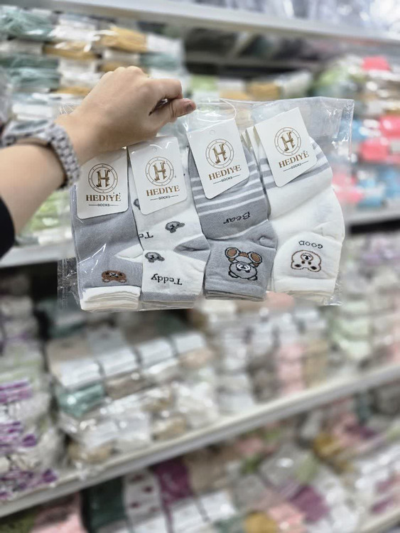 جوراب نیم ساق بچه گانه طرح تدی زمینه توسی 4شماره کد 2982