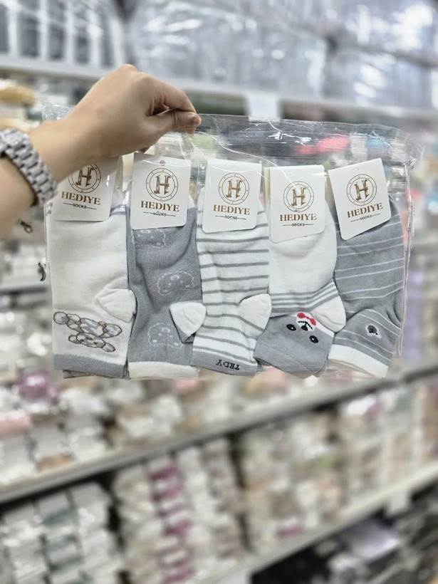 جوراب نیم ساق بچه گانه نخ پنبه اعلا طرح متنوع زمینه توسی کد 2987( 10جفتی )