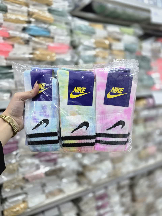 جوراب ساقدار کش انگلیسی اسپرت آبرنگی طرح نایک خط دار کد 1806 (12جفتی)