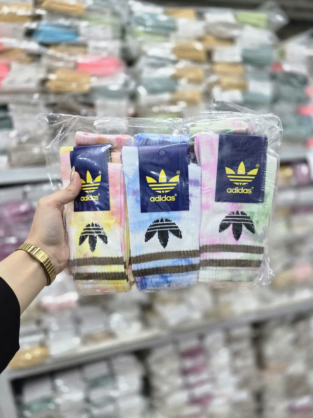 جوراب ساقدار کش انگلیسی اسپرت آبرنگی طرح آدیداس خط دار کد 1807 (12جفتی)