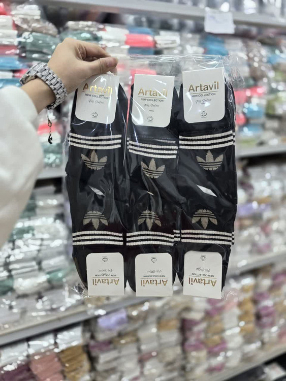 جوراب نیم ساق زنانه نخ پنبه هندی کش انگلیسی طرح ادیداس تمام مشکی کد 1593 ( 12جفتی )