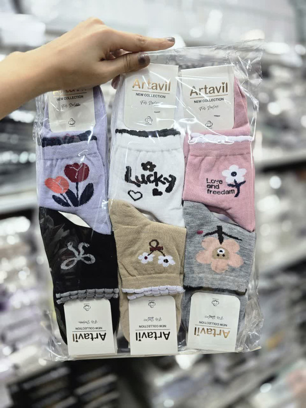 جوراب نیم ساق زنانه نخ پنبه هندی در طرح گل رنگ متنوع کد 1507 ( 12جفتی )