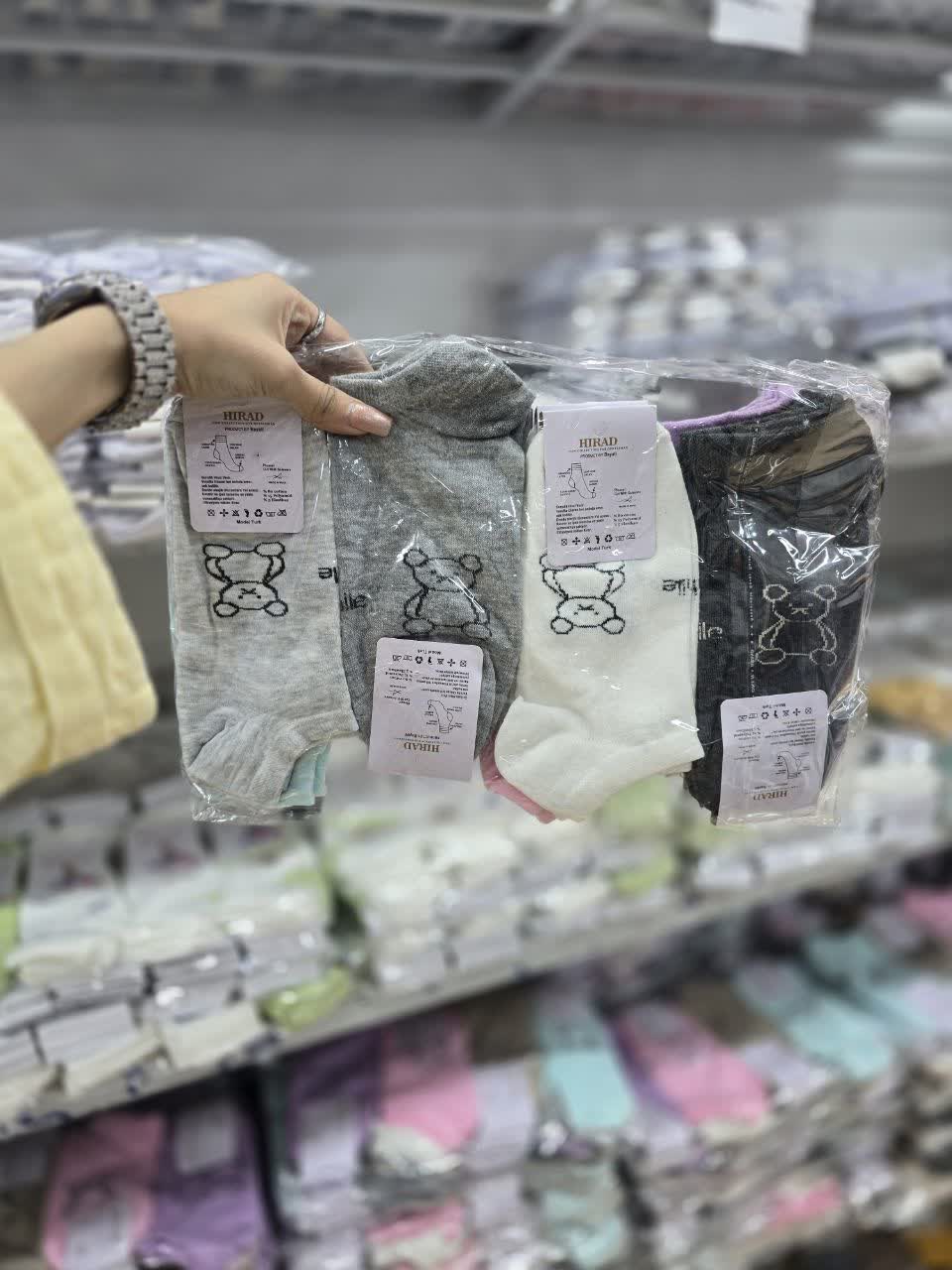 جوراب مچی زنانه نخی فانتزی طرح تدی کد 1240