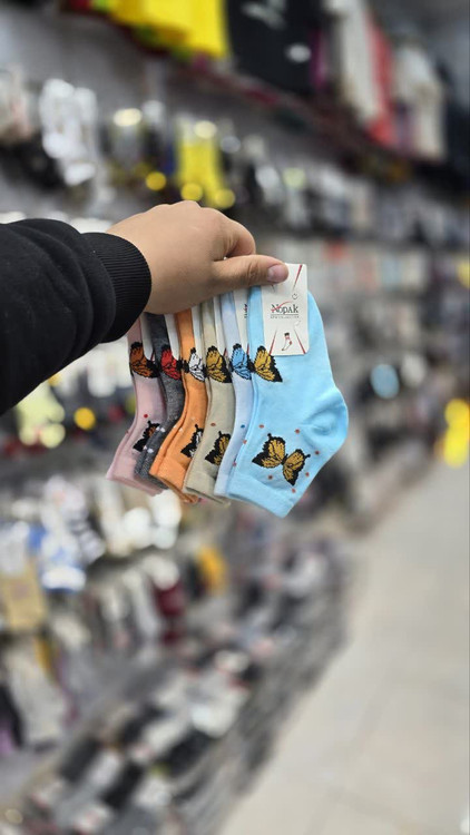 جوراب نیم ساق بچه گانه اعلا پاشنه و پنجه دوبل طرح جفت پروانه کد 2931