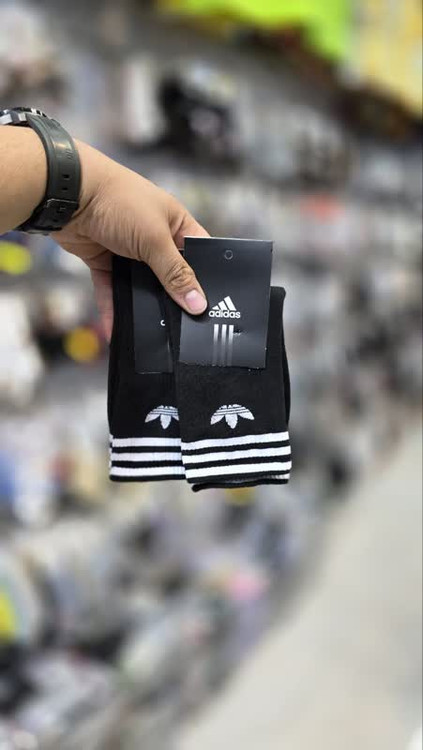 جوراب ساقدار زنانه نخ پنبه هندی تمام مشکی طرح آدیداس کد 1052 ( 12جفتی )