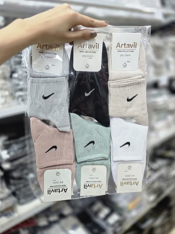 جوراب نیم ساق زنانه نخ پنبه هندی در طرح نایک کد 1523 ( 12جفتی )