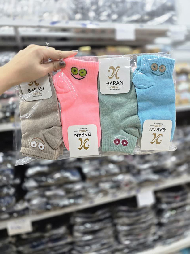 جوراب مچی زنانه کش انگلیسی رنگبندی فانتزی طرح لبخند کد 1284