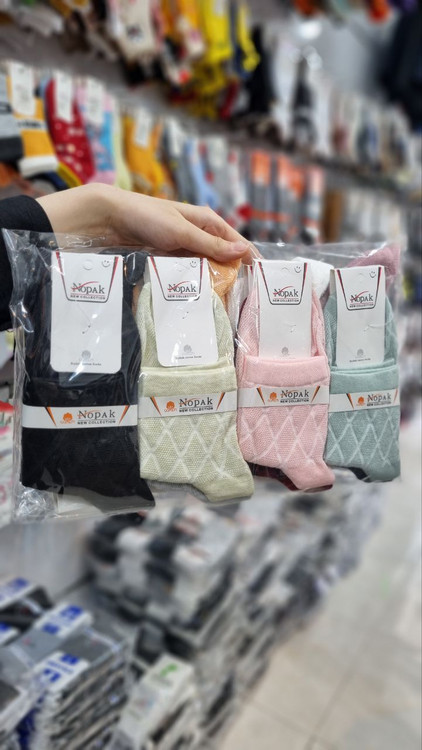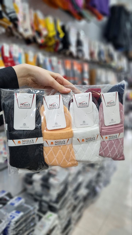 جوراب نیم ساق زنانه نخ پنبه هندی طرح لوزی نوپک کد 1503 ( 12 جفتی )