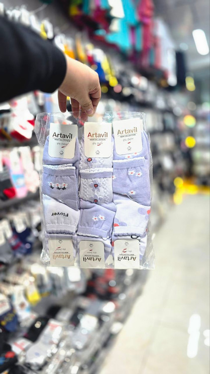 جوراب نیم ساق زنانه نخ پنبه هندی در طرح بنفش گلی کد 1531 ( 12جفتی )