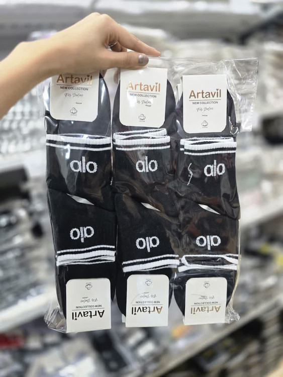 جوراب نیم ساق زنانه نخ پنبه هندی در طرح alo تمام مشکی کد ۱۵۳۳ ( 12جفتی )