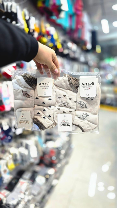 جوراب مچی زنانه نخی با کیفیت بالا طرح تدی زمینه قهوهای کد ۱۳۰۳ ( 12 جفتی )