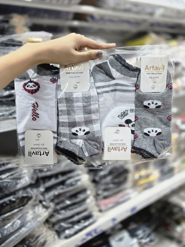 جوراب مچی زنانه نخی با کیفیت بالا طرح پاندا سفید طوسی کد ۱۳۰۴ ( 12 جفتی )