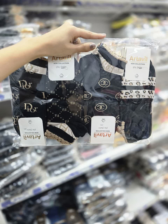 جوراب مچی زنانه نخی با کیفیت بالا طرح مشکی دیوور و فندی کد ۱۳۰۷ ( 12 جفتی )