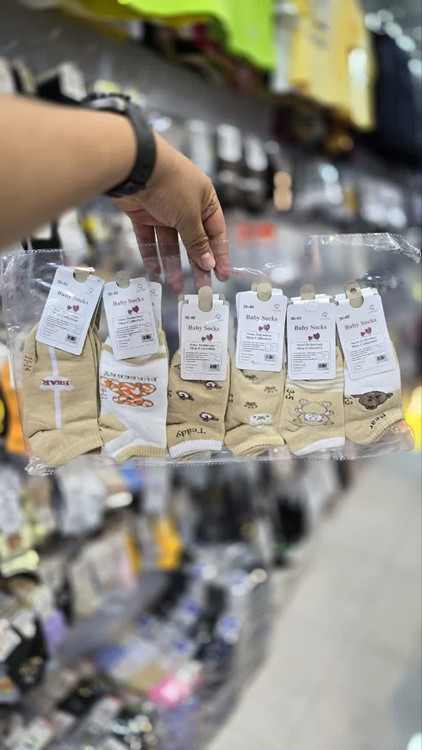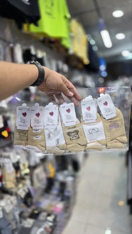 جوراب مچی بچه گانه نخی در طرح های مختلف زمینه سفید کرم برند هدیه کد 2755 ( 12 جفتی )