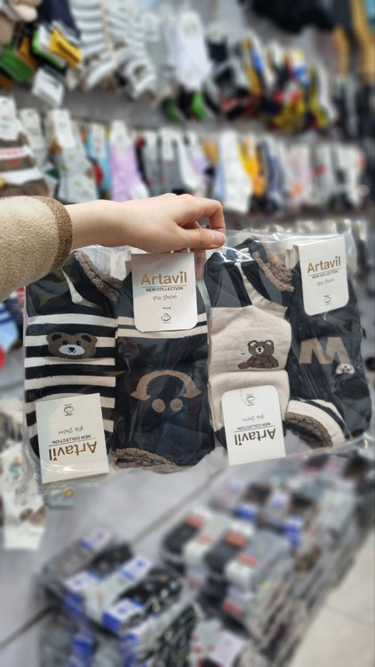 جوراب مچی زنانه نخی با کیفیت بالا طرح تدی لبخند کد ۱۳۳۸ ( 12 جفتی )