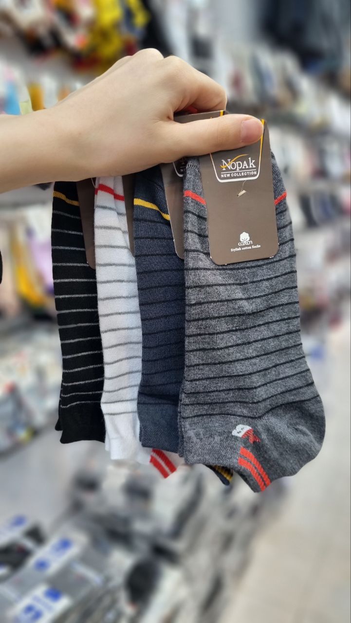 جوراب مچی مردانه نخ پنبه طرح NB راه راه نوپاک کد 1954 ( 12جفتی )