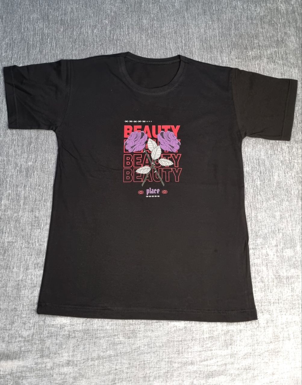 تیشرت نخ پنبه طرح گل رنگی کد ۳۵۳۷