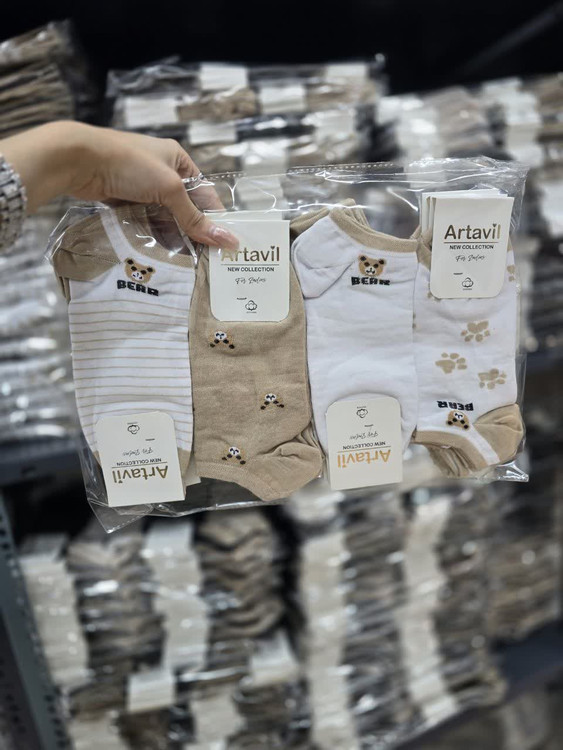 جوراب مچی زنانه نخی با کیفیت بالا طرح تدی متنوع کد 1203 ( 12 جفتی )
