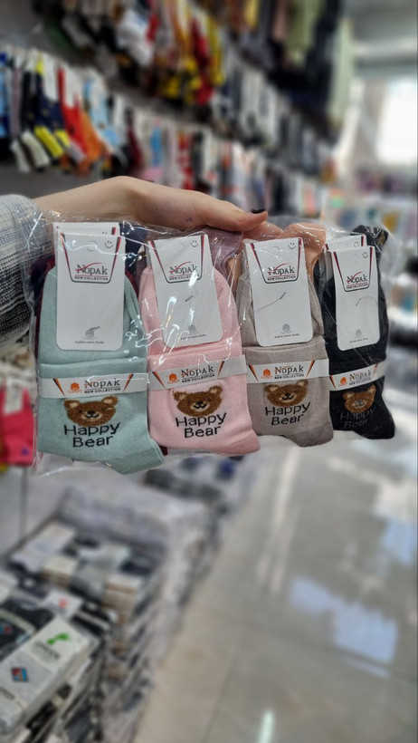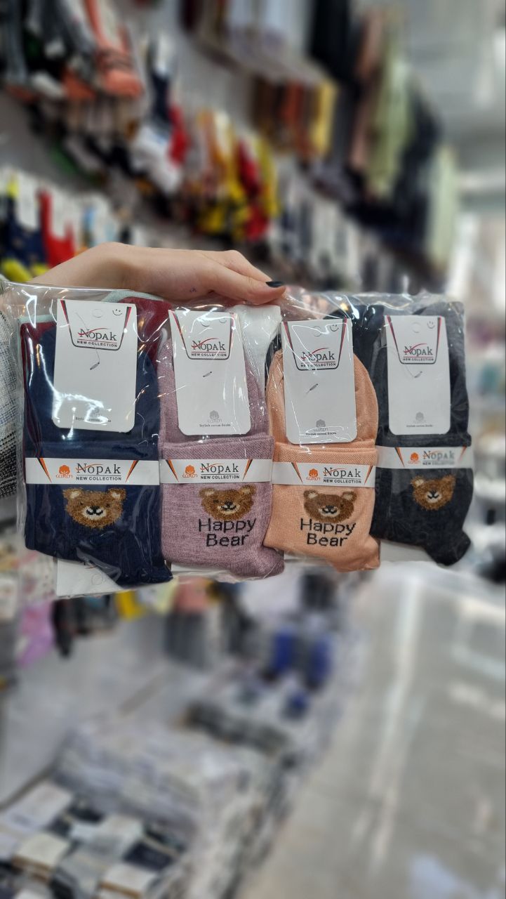 جوراب نیم ساق زنانه نخ پنبه هندی طرح تدی بوکله نوپاک کد 1544 ( 12 جفتی )