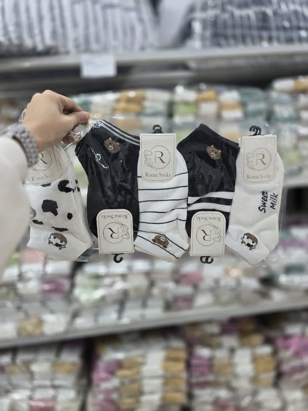 جوراب مچی زنانه نخی طرح متنوع مشکی سفید کد ۱۴۲۷